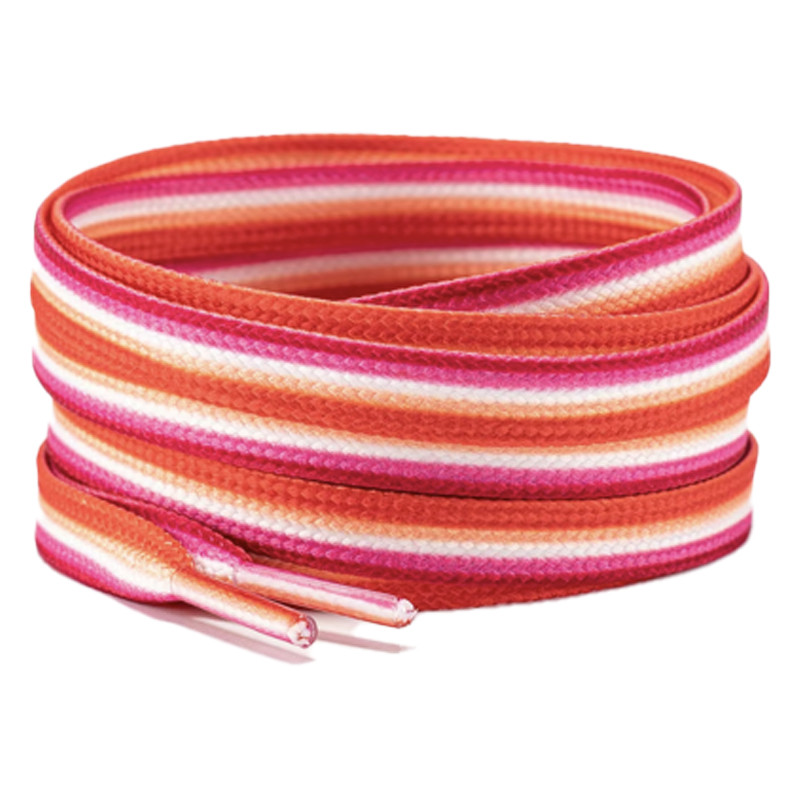 Découvre nos lacets aux couleurs du drapeau lesbien, un accessoire parfait pour toutes les femmes de la communauté LGBTQIA+. Ce drapeau, avec ses nuances de rose, d'orange et de blanc, symbolise l'amour, l'indépendance et la sororité. En les portant, tu t'affirmes et tu montres ton soutien à la communauté lesbienne et à la fierté de ton identité.
