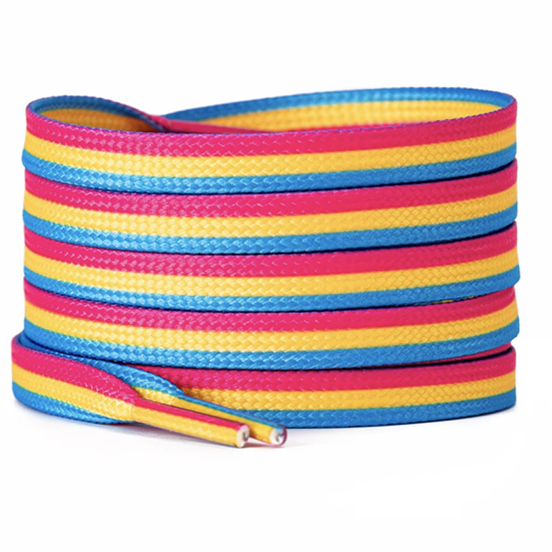 Découvre nos lacets aux couleurs du drapeau pansexuel. Ils sont l'accessoire parfait pour un look LGBT tendance et pour t'affirmer partout où tu vas.