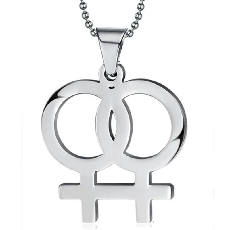Pendentif en acier inoxydable représentant un double symbole Vénus.