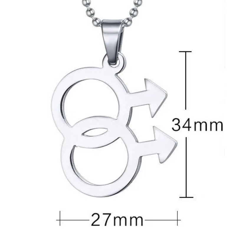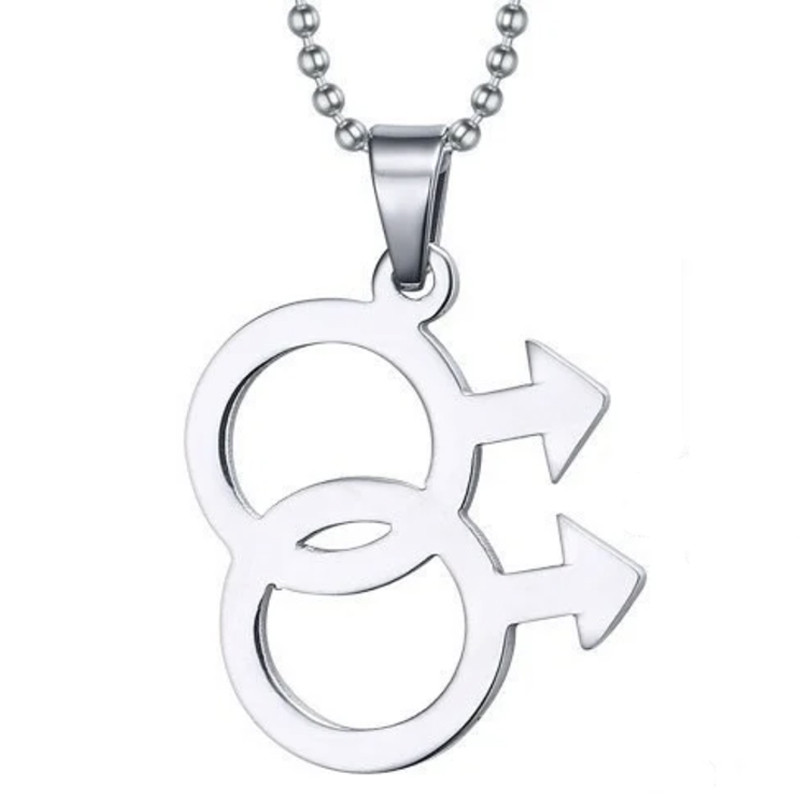 Pendentif en acier inoxydable représentant un double symbole masculin.