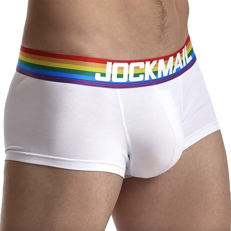 Découvre le boxer Jockmail blanc, un classique qui t'apporte un confort exceptionnel et un style élégant. Fabriqué dans un coton doux et respirant, il est parfait pour une sensation de légèreté tout au long de la journée. Sa ceinture emblématique aux couleurs de l'arc-en-ciel, ornée du logo JOCKMAIL, est une touche de fierté discrète et moderne.