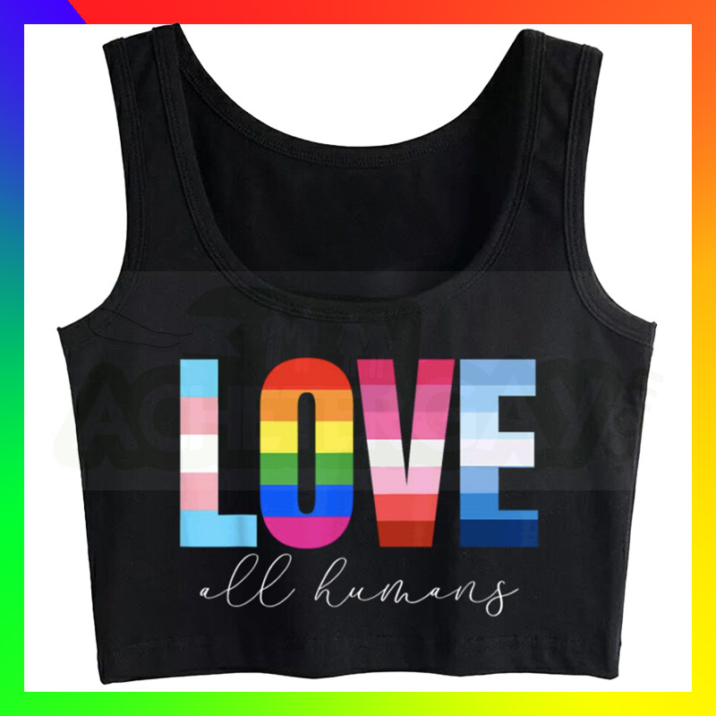 Crop top de la marque Guys As You arborant le drapeau arc-en-ciel sur le torse.