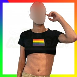 Crop top de la marque Guys As You arborant le drapeau arc-en-ciel sur le torse.